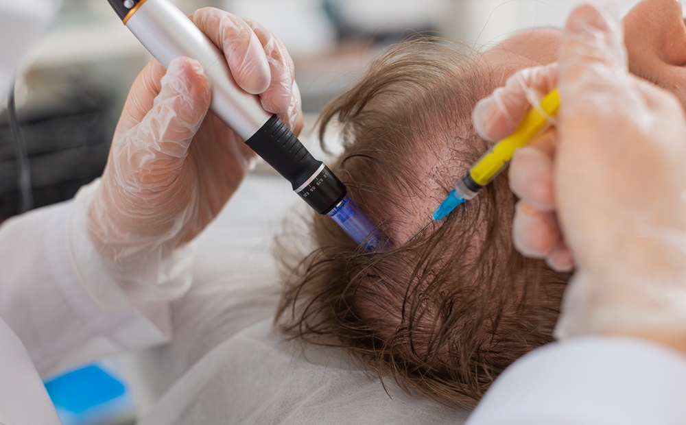 The procedure typically takes about an hour. Your practitioner draws blood, spins it in a centrifuge to separate the components, then uses tiny needles to inject the concentrated platelets into areas experiencing hair thinning or loss.